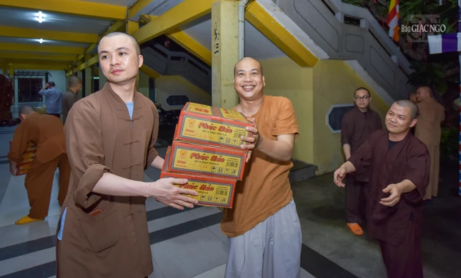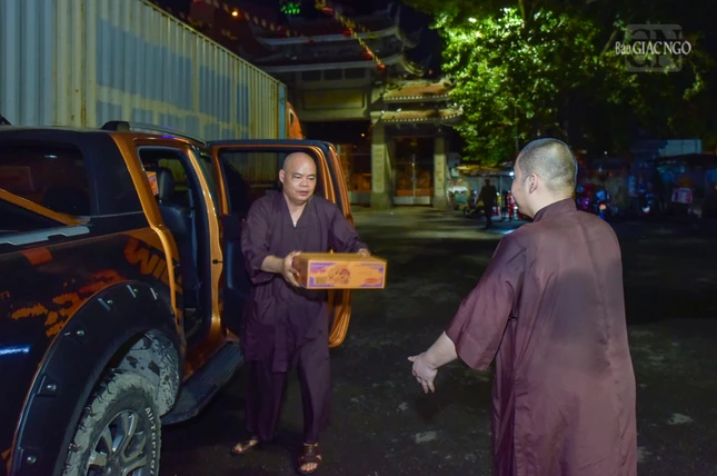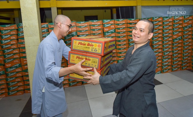 GNO - 23 giờ 30 phút tối 12-9, hơn 7.000 thùng mì cùng các nhu yếu phẩm được Tăng Ni, Phật tử tập kết và vận chuyển từ chùa Vĩnh Nghiêm (Q.3) ra các tỉnh thành phía Bắc. Đây là chuyến hàng đầu tiên của Phật giáo TP.HCM hướng về đồng bào ở các địa phương phía Bắc của đất nước bị thiệt hại do bão số 3 gây ra.