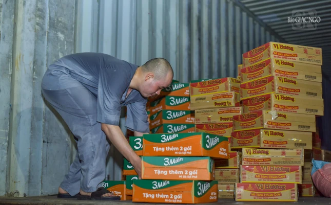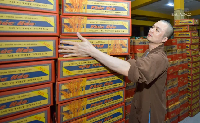 | Hơn 7.000 thùng mì cùng các nhu yếu phẩm được Phật giáo TP.HCM ủng hộ, vận chuyển ra hỗ trợ người dân các tỉnh miền Bắc |