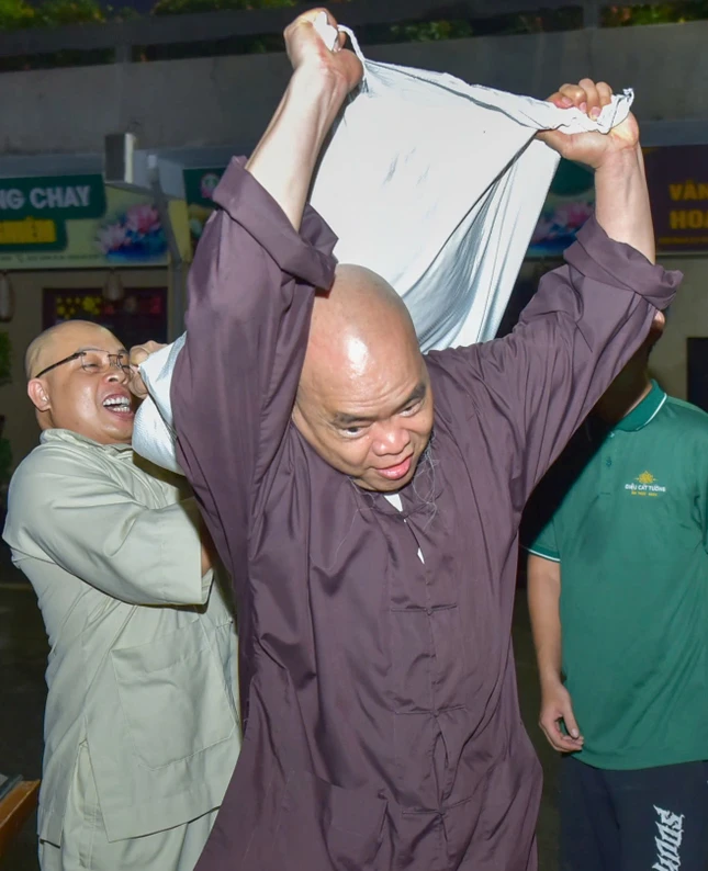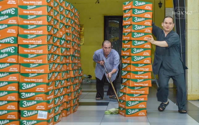 Giữa bộn bề công việc, Thượng tọa Thích Thanh Phong, Phó Chủ tịch Hội đồng Trị sự, Trưởng ban Kinh tế - Tài chính T.Ư, Trưởng ban Từ thiện xã hội GHPGVN TP.HCM vẫn trực tiếp tham gia bốc dỡ hàng tấn gạo, hàng ngàn thùng mì lên container. Hình ảnh đó càng tiếp thêm động lực, tinh thần cho các thành viên của Ban Kinh tế - Tài chính T.Ư, Ban Từ thiện xã hội GHPGVN TP.HCM cũng như chư Tăng chùa Vĩnh Nghiêm hoàn thành công việc nặng nhọc của mình.