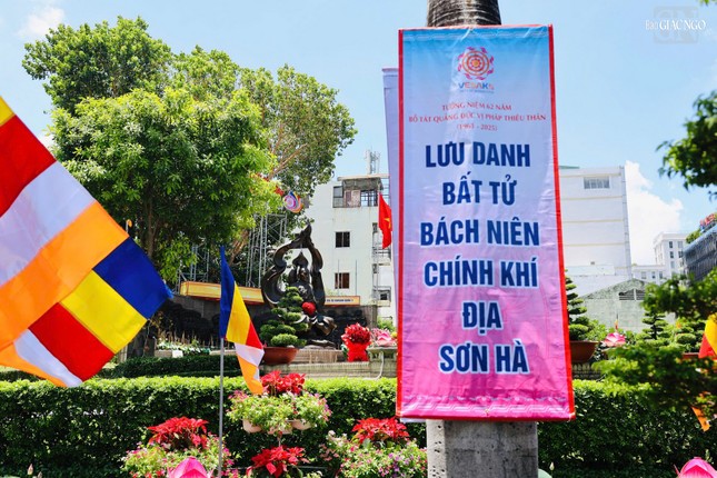 GNO - Tại Công viên tượng đài Bồ-tát Thích Quảng Đức và các tự viện trên địa bàn Q.3, Q.10, lễ đài Phật đản, cờ hoa đã hoàn thiện dâng lên kính mừng Phật đản Phật lịch 2569.