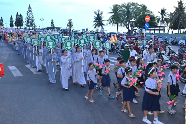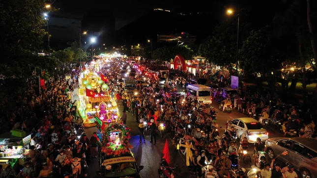 Tiếp đó 18 giờ 30, sau khóa lễ cầu nguyện, gần 40 chiếc xe hoa rực rỡ sắc màu của các huyện, thành phố lần lượt theo thứ tự sắp xếp của Ban Tổ chức, diễu hành trên các cung đường thuộc TP.Vũng Tàu.