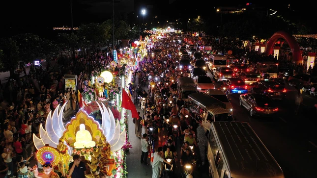 Hình ảnh Lễ cung rước kim thân tôn tượng Đức Phật đản sinh và diễu hành xe hoa vào tối 14-4-Ất Tỵ: