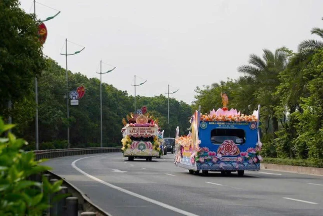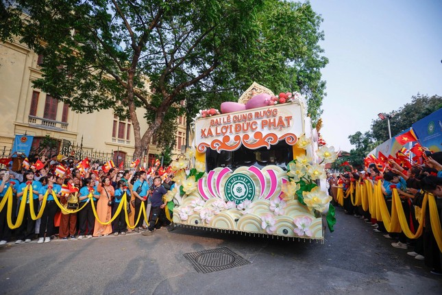 Đoàn xe cung rước xá-lợi Đức Phật trang nghiêm khởi hành từ sân bay Nội Bài, dẫn đầu là xe hoa rực rỡ, tiếp đến là xe tôn trí xá-lợi Phật, theo sau là xe của chư tôn đức và đại biểu hai nước. Đoàn di chuyển qua các tuyến đường của Thủ đô như cầu Nhật Tân, Võ Chí Công, Đào Tấn, Kim Mã, Lê Duẩn, Trần Nhân Tông, Trần Bình Trọng và Cung Văn hóa Hữu nghị Việt - Xô, kết thúc tại chùa Quán Sứ - trụ sở Trung ương GHPGVN.