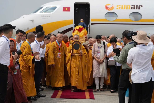 | Thành kính cung đón xá-lợi Đức Phật tại sân bay Nội Bài |
