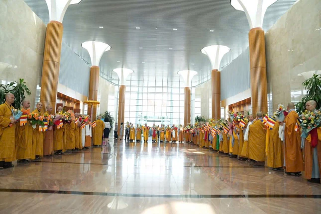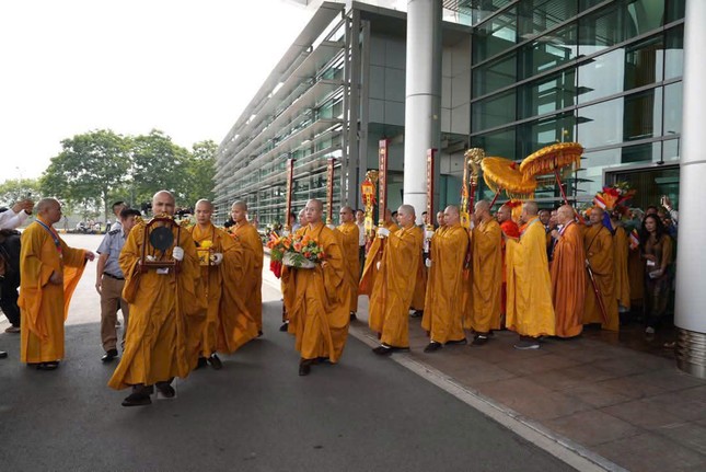 Cung đón xá-lợi Đức Phật tại sân bay Nội Bài có Trưởng lão Hòa thượng Thích Thanh Nhiễu, Ủy viên Thường trực Hội đồng Chứng minh, Phó Chủ tịch Thường trực Hội đồng Trị sự; Hòa thượng Thích Bảo Nghiêm, Phó Chủ tịch Hội đồng Trị sự, Trưởng ban Hoằng pháp T.Ư, Trưởng ban Trị sự GHPGVN TP.Hà Nội; Thượng tọa Thích Đức Thiện, Phó Chủ tịch kiêm Tổng Thư ký Hội đồng Trị sự; cùng chư vị giáo phẩm Hội đồng Trị sự GHPGVN; Thứ trưởng Bộ Dân tộc và Tôn giáo Nguyễn Hải Trung; ông Lê Hồng Sơn, Ủy viên Ban Thường vụ Thành ủy, Phó Chủ tịch Thường trực UBND TP.Hà Nội; cùng đại diện các ban ngành Trung ương, TP.Hà Nội và đông đảo Tăng Ni, Phật tử, người dân Thủ đô.