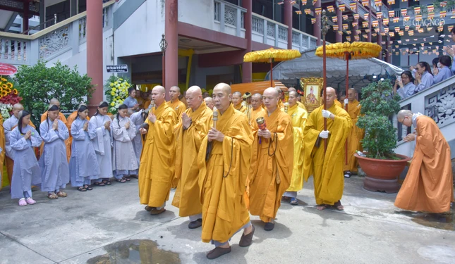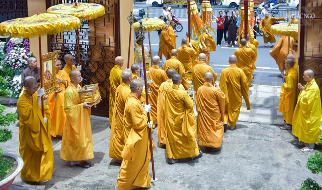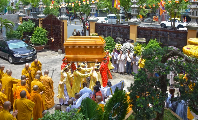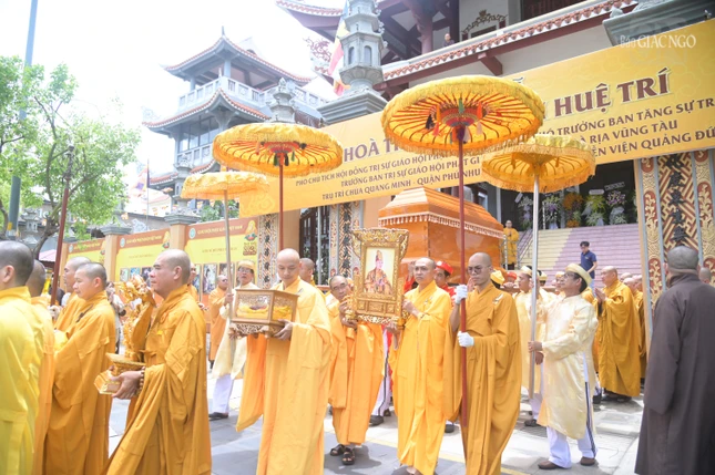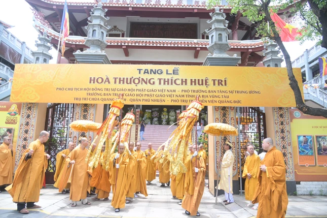 GNO - Sáng nay, 21-7 (16-6-Giáp Thìn), Ban Tổ chức Lễ tang, sơn môn pháp phái đã trang nghiêm tổ chức lễ truy niệm; sau đó cung thỉnh kim quan Hòa thượng Thích Huệ Trí, Phó Chủ tịch Hội đồng Trị sự, Trưởng ban Trị sự GHPGVN tỉnh Bà Rịa-Vũng Tàu rời Giác linh đường thiền viện Quảng Đức.
