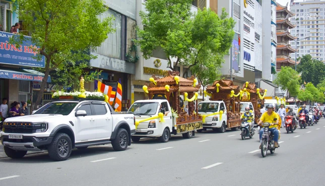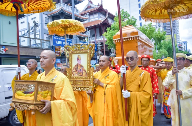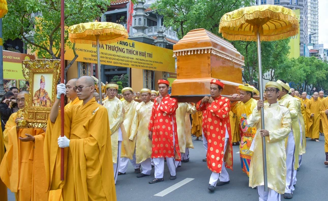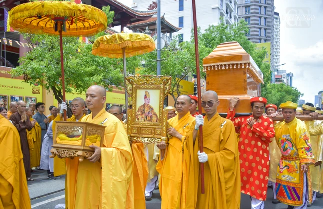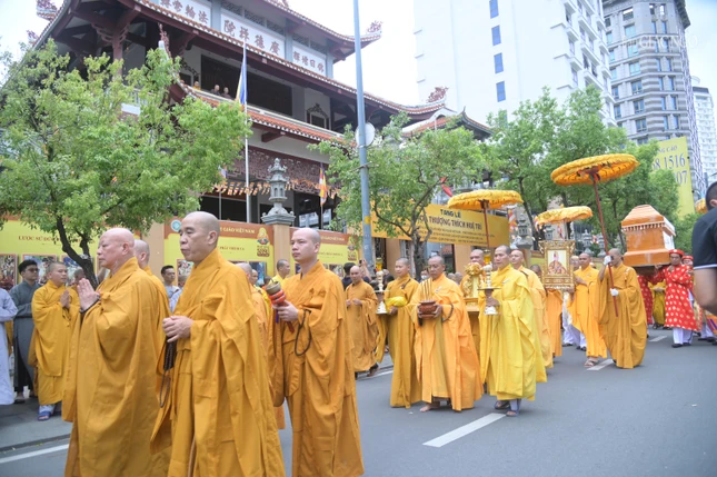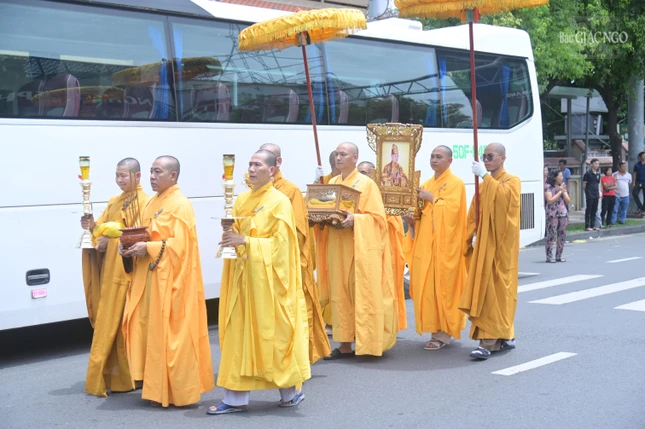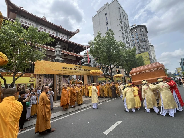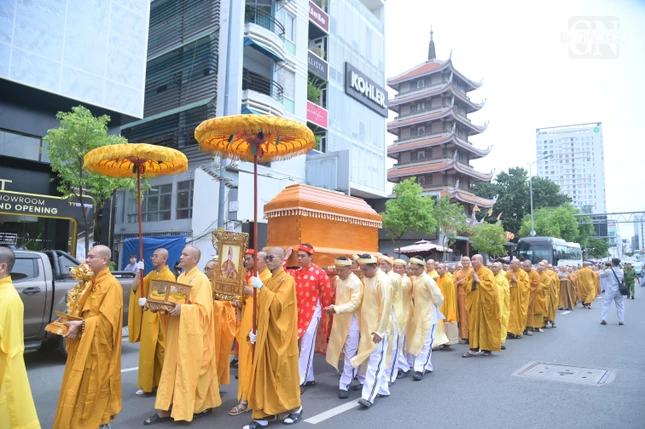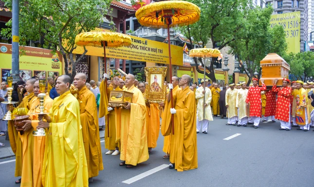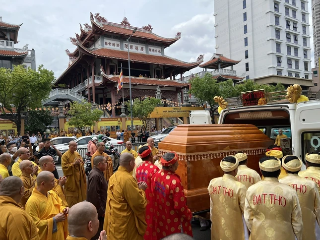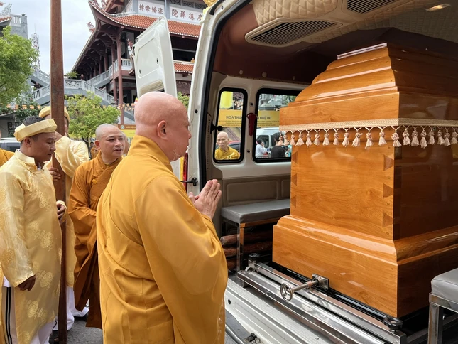 Chư tôn đức môn đồ pháp quyến đã cung thỉnh bát hương, linh mô, y bát, di ảnh, kim quan Hòa thượng Thích Huệ Trí rời thiền viện Quảng Đức, vĩnh biệt đất phương Nam trở về chốn Tổ ở cố đô Huế.