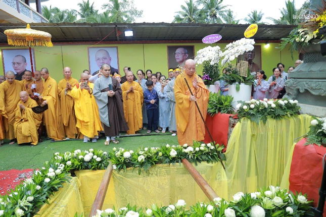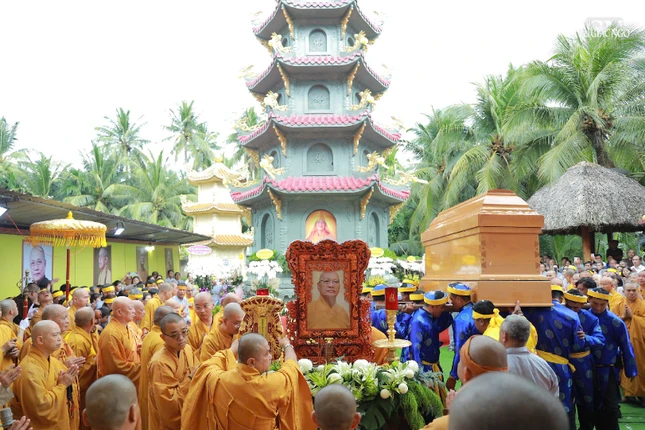 GNO - Sau Lễ truy niệm của Trung ương Giáo hội vào 5 giờ sáng nay, 27-10, kim quan Trưởng lão Hòa thượng Thích Thiện Tánh được phụng tống rời chùa Phổ Quang (P.Tân Sơn Hòa, TP.HCM) về nhập tháp trong khuôn viên chùa Long Phú (tỉnh Vĩnh Long).
