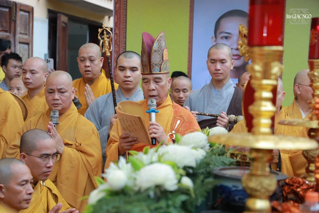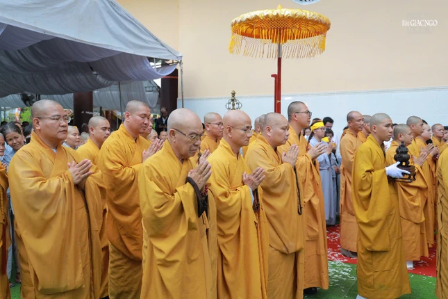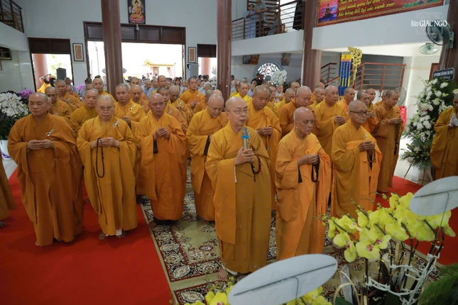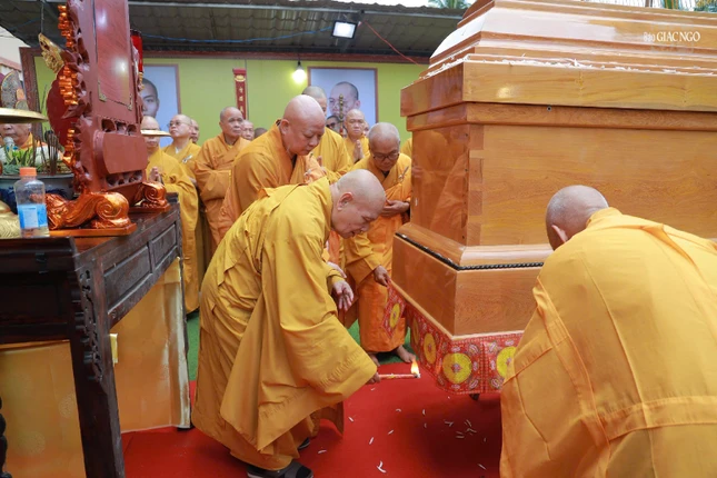 | Chư tôn đức dâng hương tưởng niệm trước khi cung thỉnh kim quan Trưởng lão Hòa thượng Thích Thiện Tánh nhập bảo tháp |