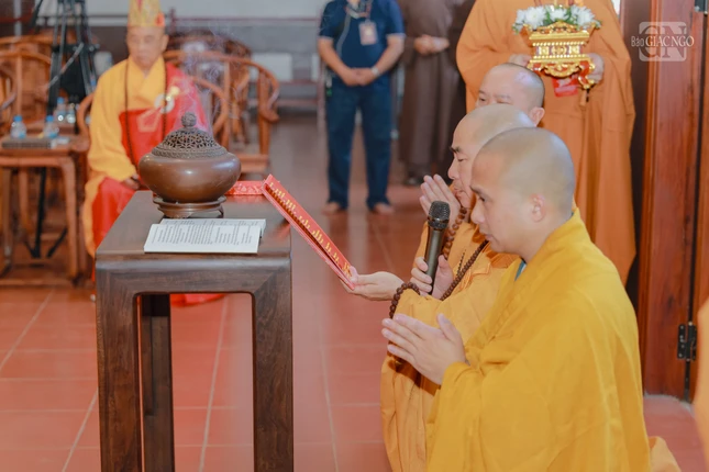 GNO - Tối 5-11 (16-9-Ất Tỵ), tại chùa Minh Thành (P.Phú Hội), Đại giới đàn Cam Lộ - Đỗng Quang Phật lịch 2569 do Ban Trị sự GHPGVN tỉnh Gia Lai tổ chức đã trang nghiêm bế mạc sau 6 ngày diễn ra theo đúng các nghi lễ thiền môn và quy định của giới đàn.