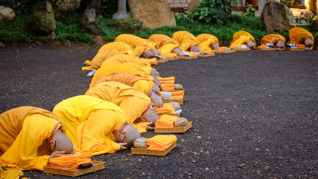 Chiều nay, giới tử Tỳ-kheo-ni theo sự hướng dẫn của chư giới sư Ni đến trước Đại Tăng cầu Chánh pháp Yết-ma, đầy đủ pháp sự theo đúng Luật tạng, chính thức trở thành tân Tỳ-kheo-ni, hòa nhập vào Tăng đoàn thanh tịnh.