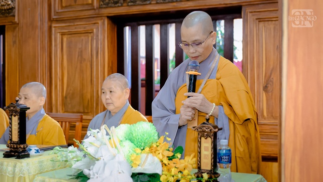 Trước khi đăng đàn truyền giới, Trưởng lão Hòa thượng Hòa thượng Thích Minh Thông, Tuyên Luật sư Đại giới đàn Cam Lộ - Đỗng Quang đã khai đạo cho tất cả giới tử Tăng Ni tại chánh điện chùa Minh Thành |