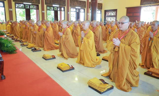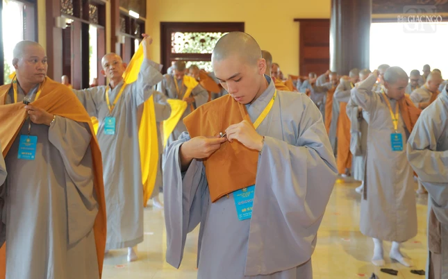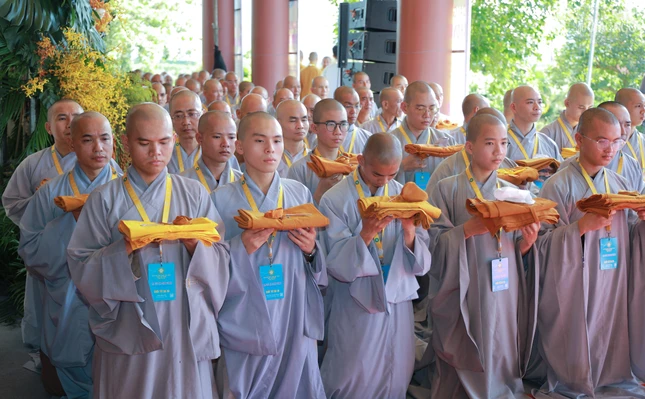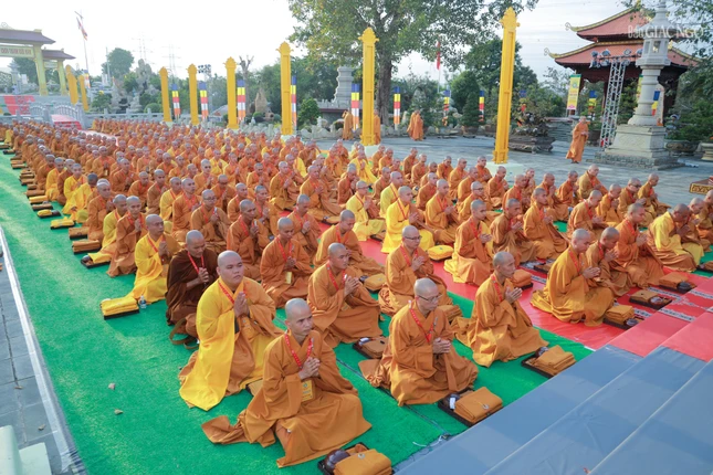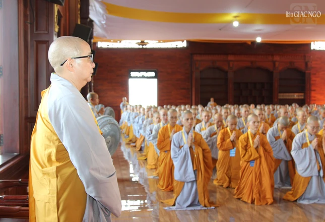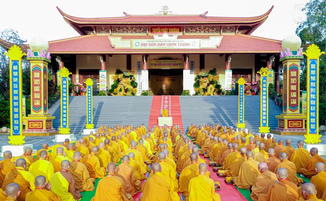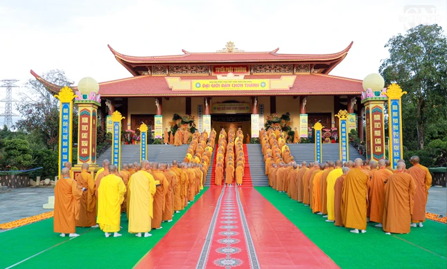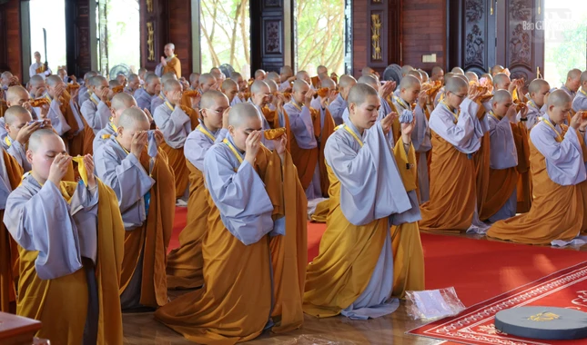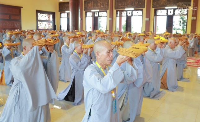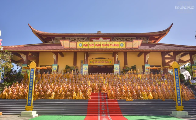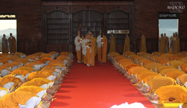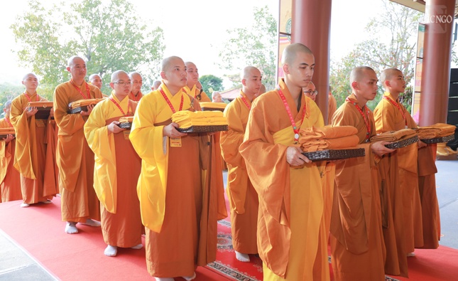 GNO - Theo đó, Hội đồng Thập sư đã trang nghiêm đăng đàn truyền giới Tỳ-kheo, Tỳ-kheo-ni, Thức-xoa-ma-na, Sa-di, Sa-di-ni cho các giới tử Đại giới đàn Chơn Thành Phật lịch 2569, tại giới trường thiền viện Trúc Lâm Chánh Thiện vào chiều 18-12.