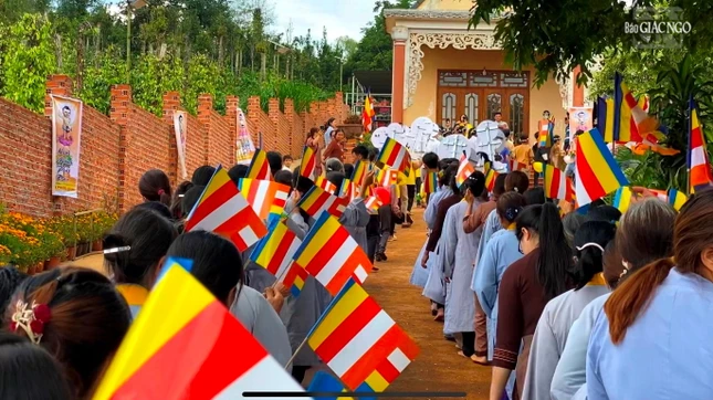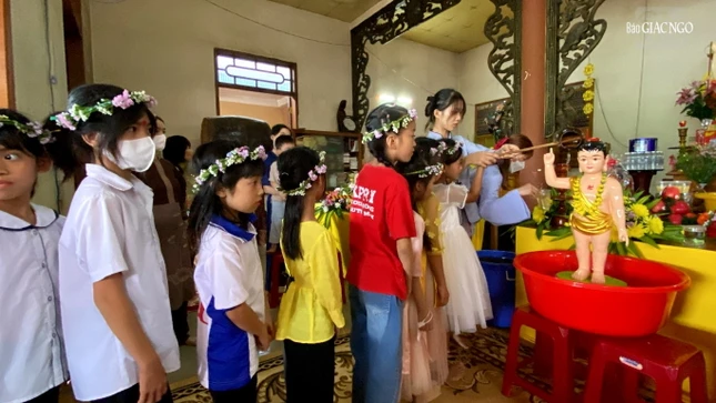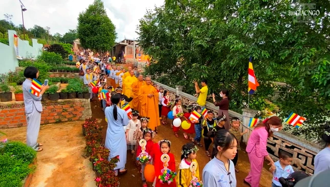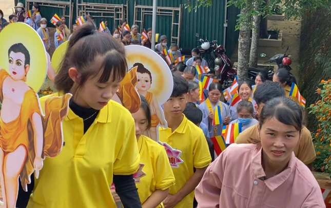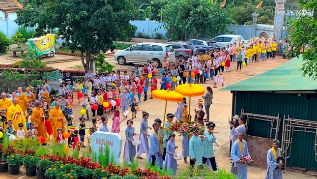 Đoàn kiệu hoa rước Đức Phật tuy chỉ diễn ra trong khuôn viên chùa quê vùng sâu của Đắk Nông nhưng lòng hân hoan của mọi người thì không sao diễn tả hết. Đoàn thanh thiếu niên Phật tử cung rước Đức Phật trên kiệu hoa xinh xắn, nối sau là hai hàng dài, mỗi bạn mỗi lẵng hoa nhỏ có hình ảnh Đức Phật sơ sinh, cuối đoàn là đạo tràng Phật tử tay cầm cờ Phật giáo tung bay.