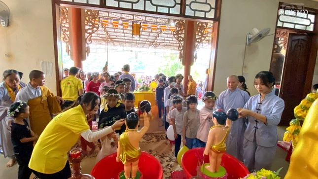 Dịp này, Ban Hướng Dẫn Phật tử và Ban Văn hóa Phật giáo tỉnh trao tặng 60 tôn tượng Đức Phật đản sanh đến bà con đạo tràng vùng sâu, giúp mọi người có thể trang trí Phật đản tại nhà.