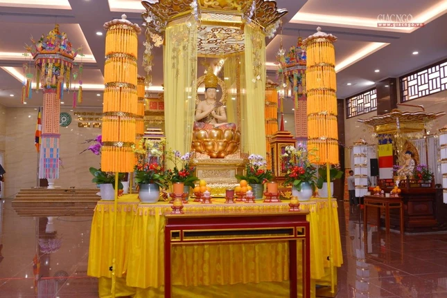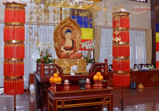 Phóng viên Giác Ngộ Online ghi nhận không gian trang nghiêm vào chiều nay, 17-8 của đàn tràng Việt Nam Quốc Tự trước ngày chính thức diễn ra lễ khai mạc: