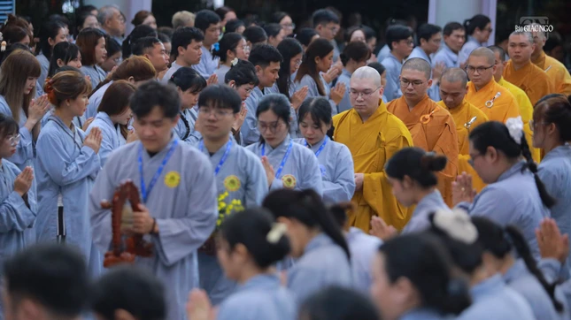 Trước đó, chùa Diệu Pháp cũng tổ chức Lễ quy y Tam bảo cho gần 200 Phật tử phát nguyện gìn giữ và thực hành tam quy, ngũ giới.