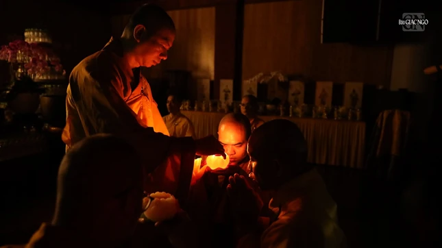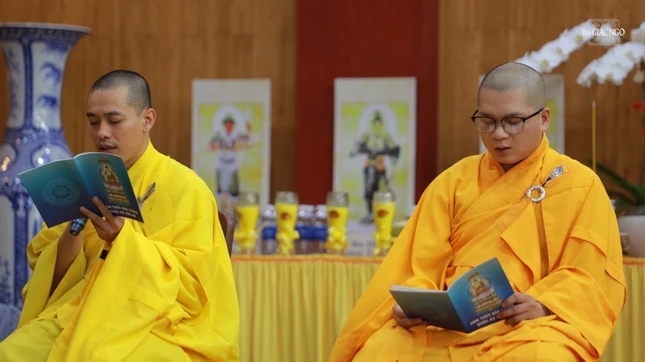 Buổi lễ dưới sự chứng minh của Thượng tọa Thích Nguyên Pháp, trụ trì chùa Diệu Pháp.