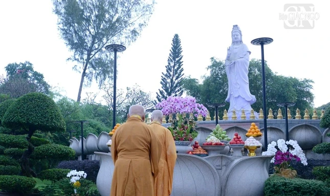 Đại lão Hòa thượng Thích Trí Quảng đã quang lâm niêm hương, xưng tán danh hiệu và hạnh nguyện của Đức Bồ-tát Quán Thế Âm trước thánh tượng Ngài trong khuôn viên chùa.