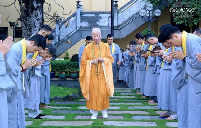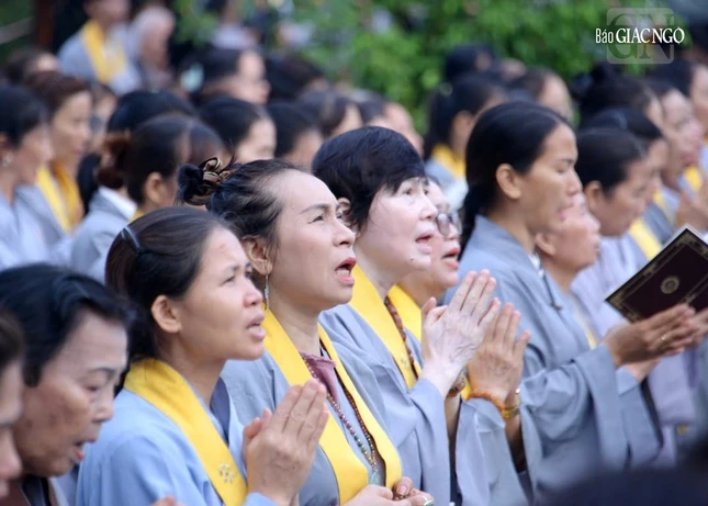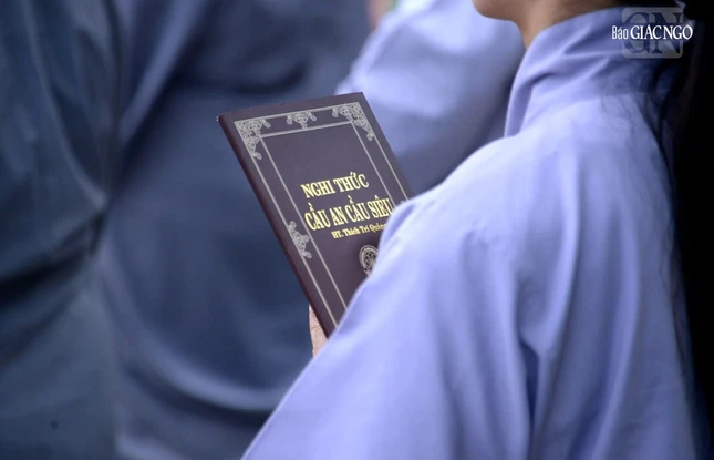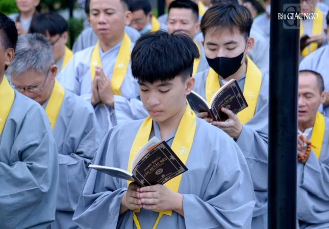 Chư Tăng nội tự dẫn lễ, cùng Phật tử trì tụng phẩm Phổ Môn trong Bổn môn Pháp hoa, cầu nguyện quốc thái dân an, gia đạo hạnh phúc và hồi hướng đến đồng bào các địa phương bị thiên tai sớm vượt qua khổ nạn, ổn định đời sống.