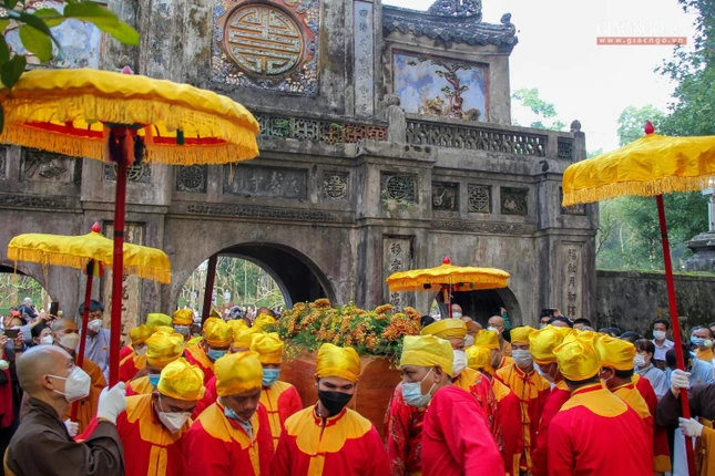 Thỉnh kim quan rời tam quan chùa Từ Hiếu - Ảnh: Trương Vững