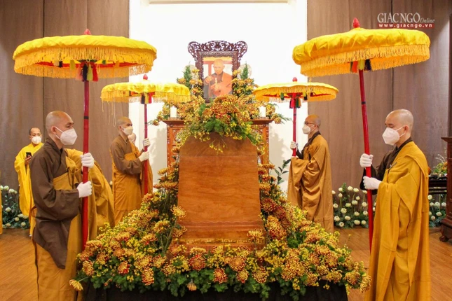 GNO - Sáng 29-1 (nhằm ngày 27-12-Tân Sửu), chư tôn đức Tăng Ni, môn đồ pháp quyến cùng các Phật tử đã vân tập về tổ đình Từ Hiếu (phường Thủy Xuân, thành phố Huế) làm lễ cung thỉnh kim quan Thiền sư Thích Nhất Hạnh trà-tỳ