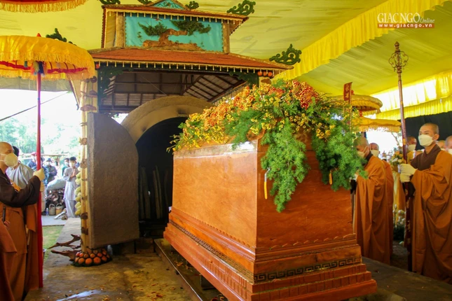 Đại diện môn đồ pháp quyến, Thầy Thích Chân Pháp Ấn đã cung tuyên tiểu sử Thiền sư Thích Nhất Hạnh, Thượng tọa Thích Từ Đạo đọc lời cảm tạ. Sau đó, ban âm công đã cung rước kim quan rời nơi tôn trí, hướng về phía tam quan tổ đình Từ Hiếu, tiến ra xe di chuyển đến địa điểm trà-tỳ tại công viên Vĩnh Hằng (xã Thủy Bằng, thị xã Hương Thủy, TP.Huế).