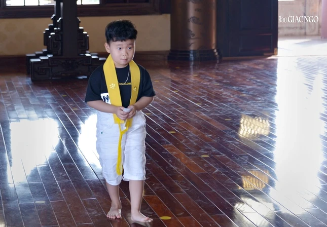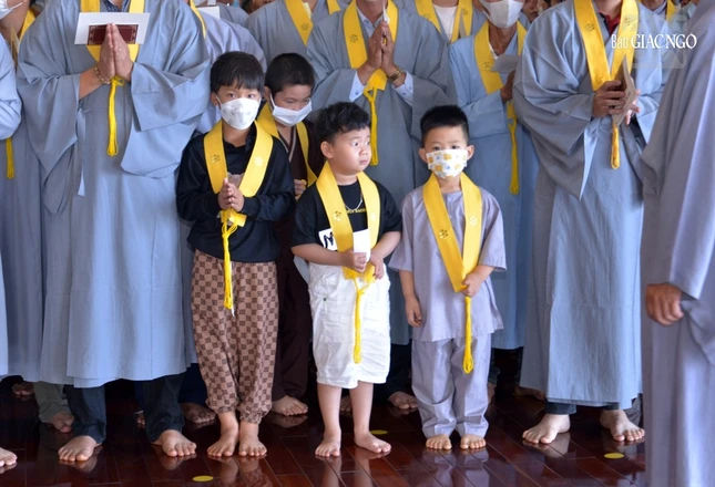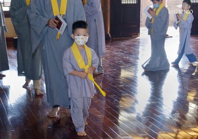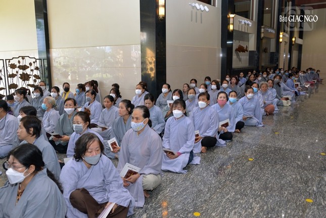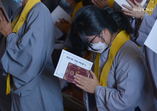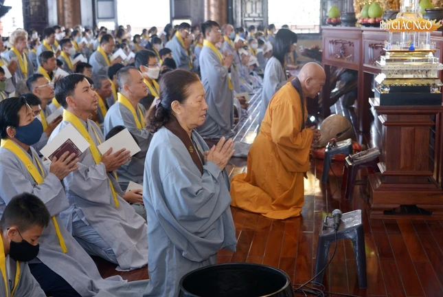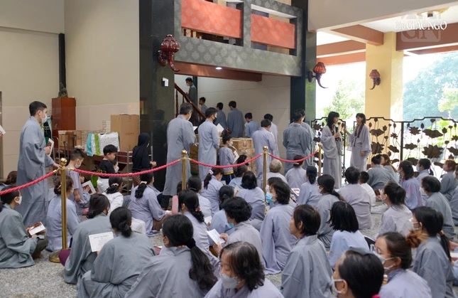 Sau khi được hướng dẫn các nghi thức căn bản của người Phật tử, mọi người lần lượt tập trung trang nghiêm thọ nhận pháp y Đạo tràng Pháp Hoa, thực hành nghi thức sám hối và tiếp nhận Tam quy, Năm giới của người cư sĩ tại gia.
