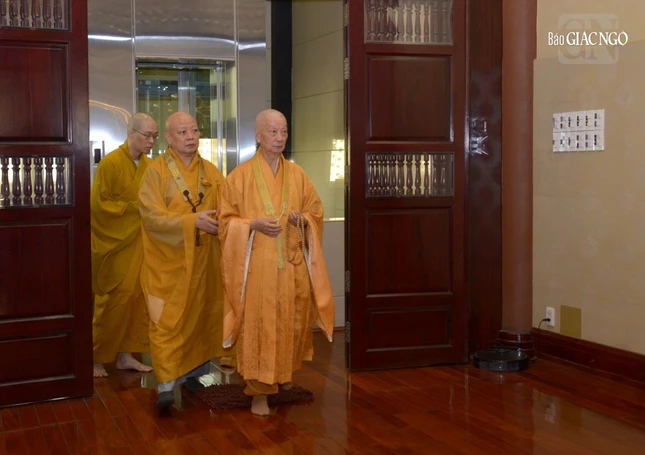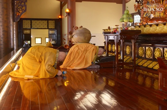 Trưởng lão Hòa thượng phương trượng chùa Huê Nghiêm hướng dẫn phát nguyện |