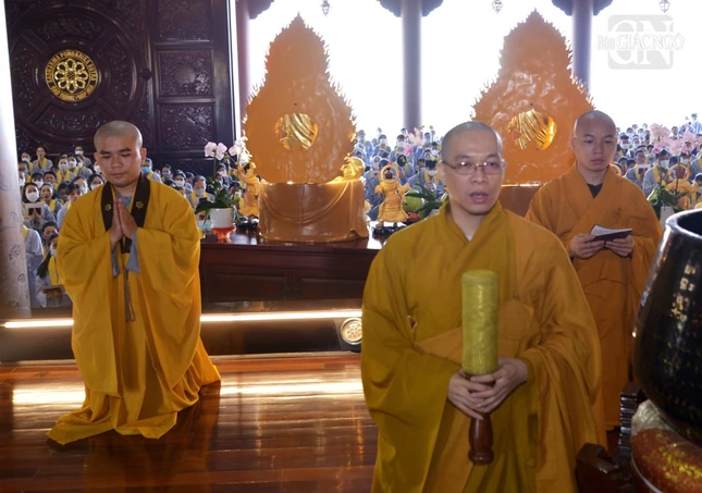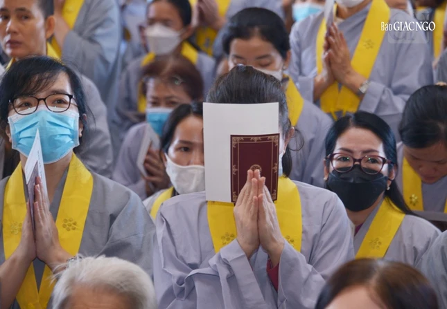 GNO - Hôm nay 14 tháng 2-Quý Mão (5-3-2023), gần 1.000 người phát tâm quy y Tam bảo đã đến chùa Huê Nghiêm - TP.Thủ Đức (TP.HCM) dự lễ phát nguyện.
