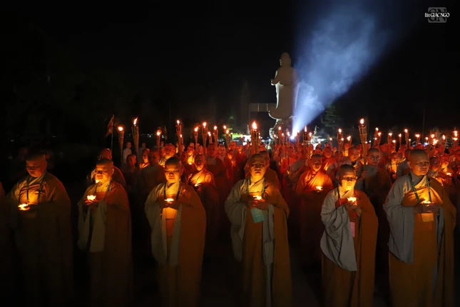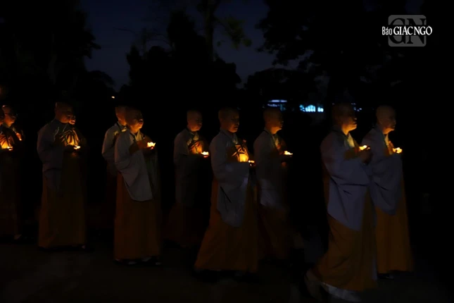 Trong khi thực hiện hô canh, tuần chiếu, giới tử đồng niệm Phật cùng ngọn nến trên tay như ngọn đèn soi rọi sự tỉnh giác trong mỗi người theo từng bước chân an lạc trong khuôn viên đại giới trường và trở về thiền đường tĩnh tọa.