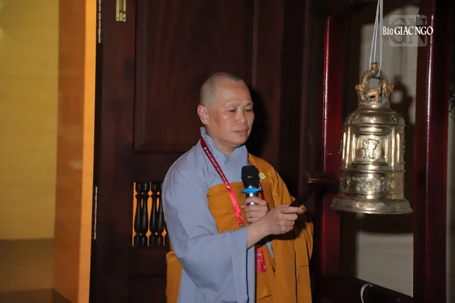 Tại thiền đường chùa Thanh Tâm, lúc 19 giờ 30, giới tử tập trung lắng nghe ý nghĩa của nghi thức hô canh, tuần chiếu |