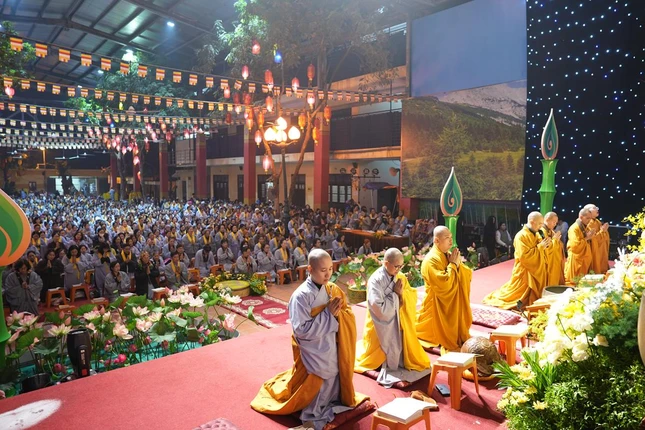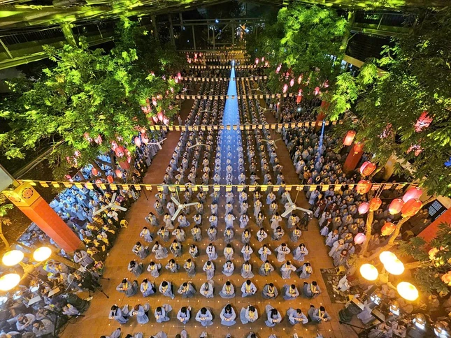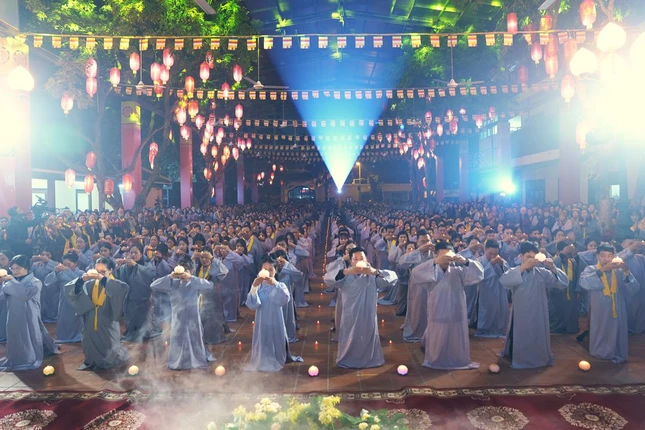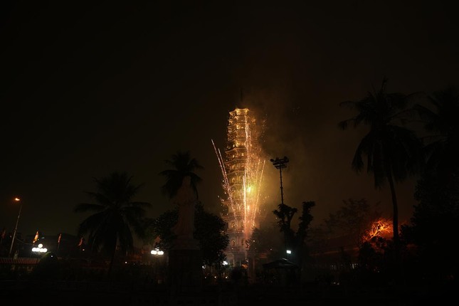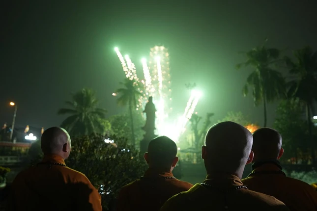 Dịp này, chư tôn đức và hàng Phật tử đã cùng chiêm ngưỡng màn pháo hoa rực rỡ tại tháp Báo Ân, thành kính cúng dường lên Đức Bổn Sư, nguyện cầu cho Chánh pháp trường tồn, thế giới hòa bình, chúng sinh an lạc.