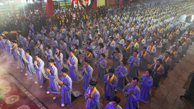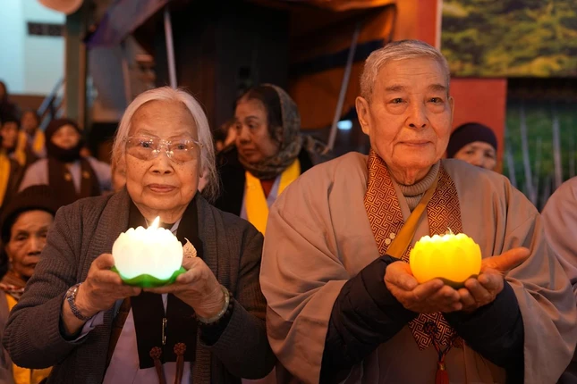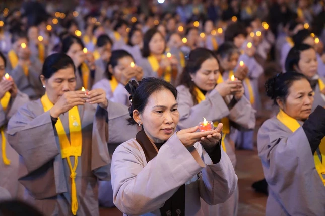 GNO - Tối 25-1 (mùng 7-12-Ất Tỵ), tại chùa Bằng – Linh Tiên tự (phường Hoàng Liệt, Hà Nội) đã trang nghiêm diễn ra Đêm hội hoa đăng kính mừng ngày Đức Phật thành đạo.