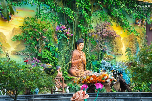 Nổi bật giữa khoảng trời rộng là Đại tượng Phật A Di Đà, cao 72m. Dưới tầng ngầm của đại tượng là không gian mô phỏng 18 tầng địa ngục, không nhằm gieo sợ hãi, mà để nhắc nhớ về luật nhân quả, về lục đạo luân hồi. Bước chân qua đó, nghe tiếng vọng của chính mình dội lại, người ta hiểu rằng mọi thiện - ác đều có tiếng nói, mọi hành động đều để lại dấu ấn trong dòng sinh tử.