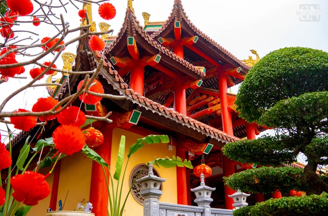 Kiến trúc nơi đây là sự giao hòa của kim và cổ. Mái ngói cong mềm, cột trụ chạm khắc hoa văn uốn lượn. Bố cục “nội công ngoại quốc”, lối thờ “tiền Phật hậu Tổ” khiến bước chân người đi qua từng lớp không gian như đang lần giở từng trang kinh trầm mặc. Phía sau Tam bảo là Tăng đường, tả vu, hữu vu, gác chuông, gác trống… tất cả nối nhau thành một quần thể bề thế mà không phô trương, trang nghiêm mà vẫn gần gũi.