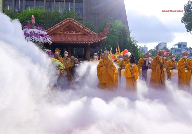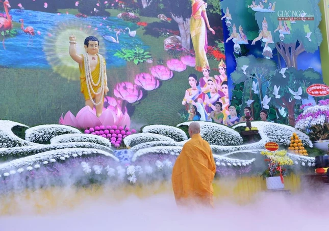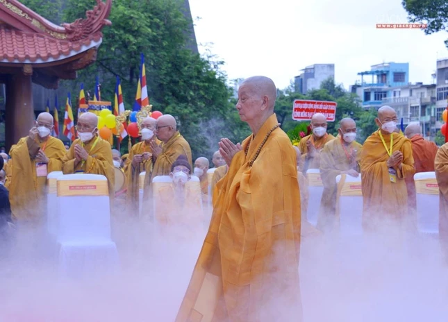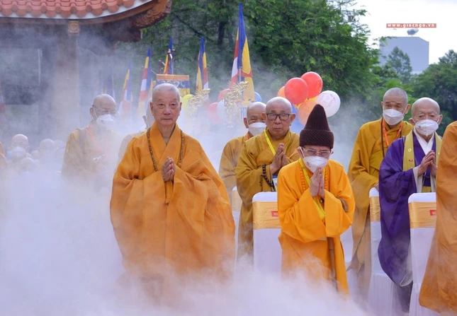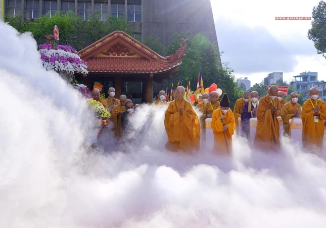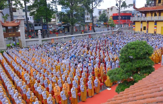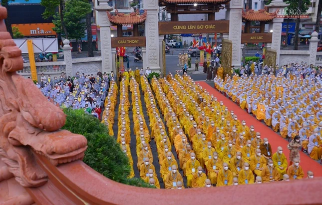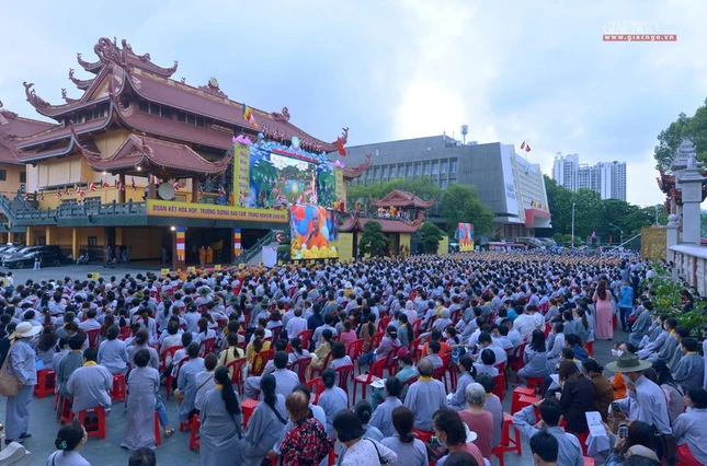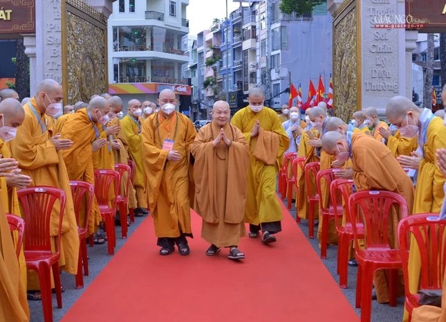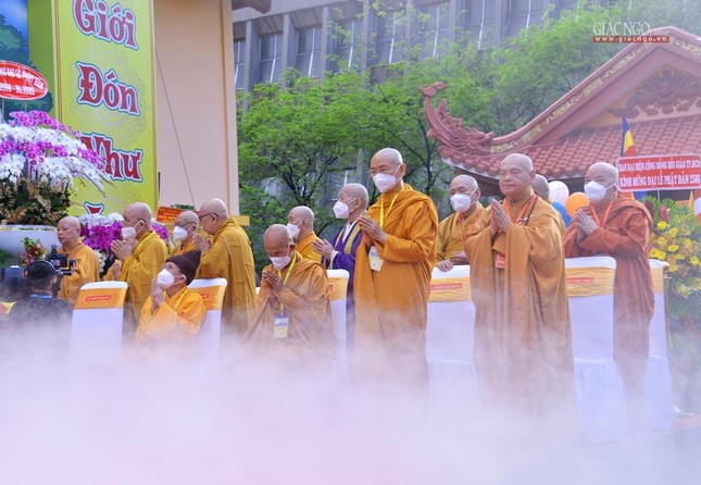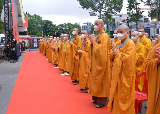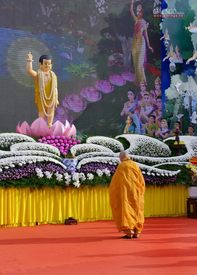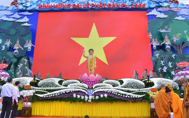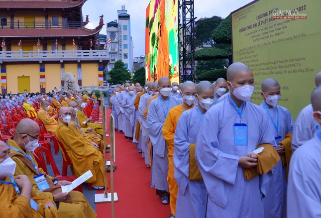 GNO - Sáng nay, rằm tháng Tư, hàng ngàn Tăng Ni, Phật tử tham dự Đại lễ Phật đản Phật lịch 2566 do Trung ương Giáo hội kết hợp Ban Thường trực Ban Trị sự GHPGVN TP.HCM tổ chức.
