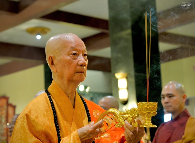 Đại lão Hòa thượng Thích Trí Quảng cũng đã thân lâm niêm hương cầu nguyện mở đầu đàn tràng và trong đàn tràng.