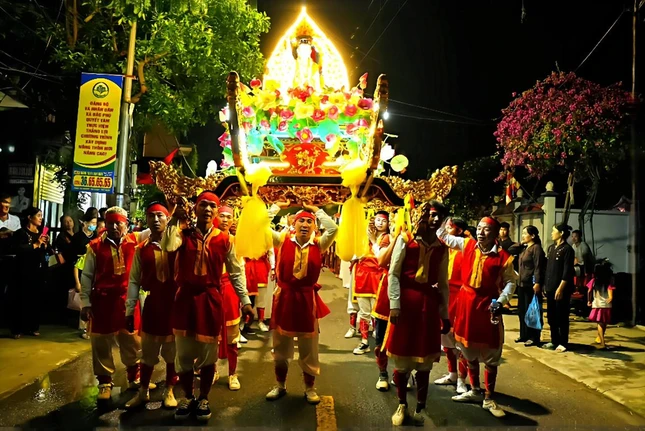 GNO - Tối mùng 9-4 ÂL (16-5), chùa Xuân Tàng (thôn Xuân Tàng, X.Bắc Phú, H.Sóc Sơn, Hà Nội) đã tổ chức Lễ rước Phật với sự tham gia của hàng nghìn người dân ở thôn Xuân Tàng.