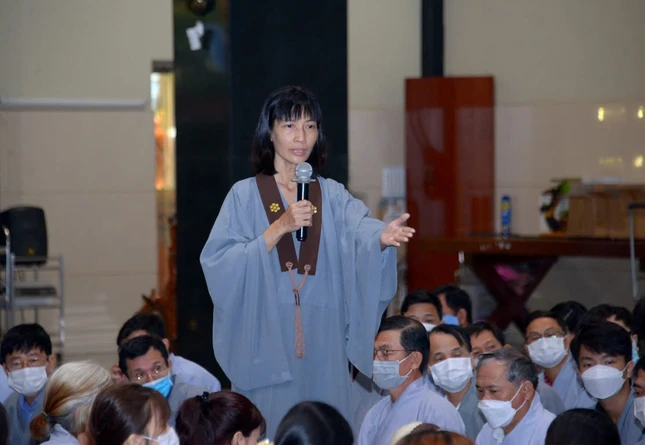 Hòa thượng Thích Lệ Trang, trụ trì chùa Huê Nghiêm đã có thời pháp thoại, giảng về ý nghĩa thiết thực của việc quy y Phật, Pháp, Tăng; thọ trì 5 giới đối với đời sống của người Phật tử tại gia trong việc kiến tạo nền tảng hạnh phúc gia đình, xây dựng cộng đồng và quê hương đất nước.