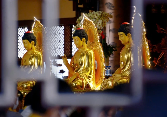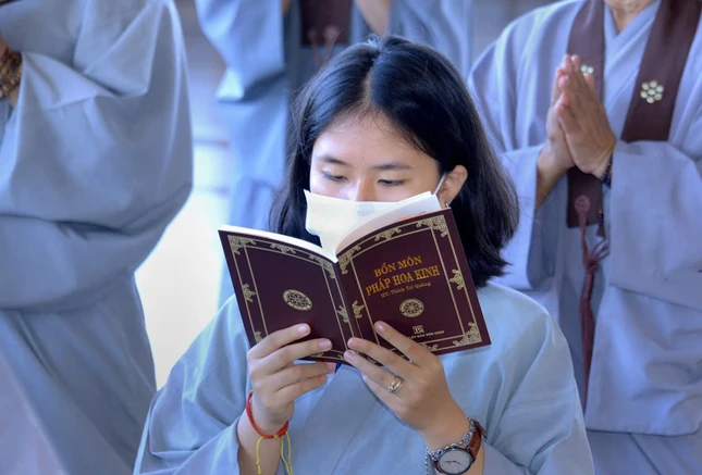 GNO - Hôm nay, 9-2 (12 tháng Giêng năm Ất Tỵ), hàng trăm người đã tham dự lễ phát nguyện quy y Tam bảo, trở thành Phật tử, tại chùa Huê Nghiêm (TP.Thủ Đức, TP.HCM) với sự chứng minh của Đại lão Hòa thượng Thích Trí Quảng, phương trượng chùa.
