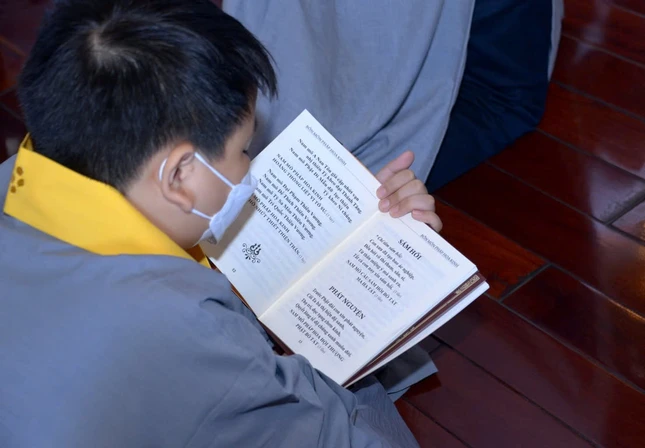Sau lễ quy y, chư Tăng đã hướng dẫn đạo tràng trì tụng khóa lễ cầu nguyện đầu năm.