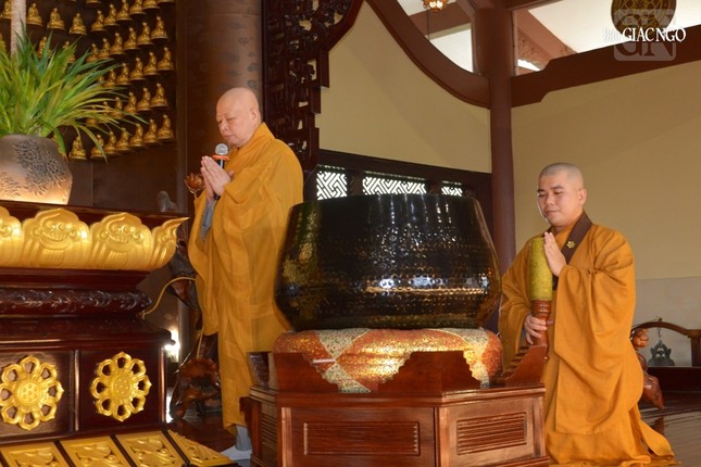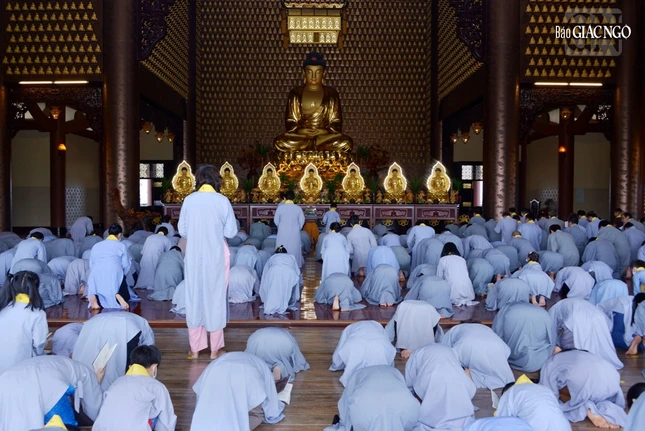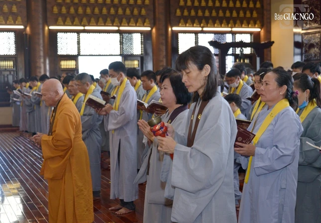 Kỳ quy y lần này, có 700 người mới phát nguyện nhận pháp y, hướng tâm Tam bảo tu học. Trưởng lão Hòa thượng Thích Trí Quảng, viện chủ quang lâm chánh điện niêm hương bạch Phật, hướng dẫn đại chúng sám hối và phát nguyện.