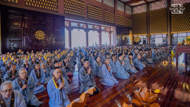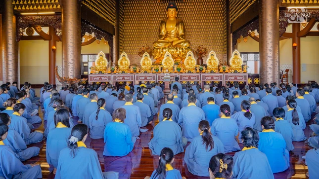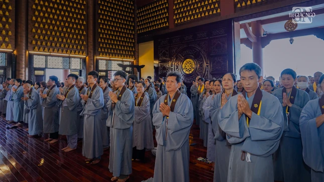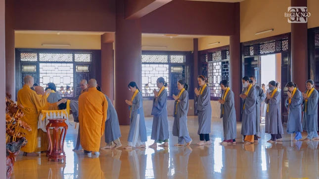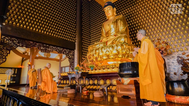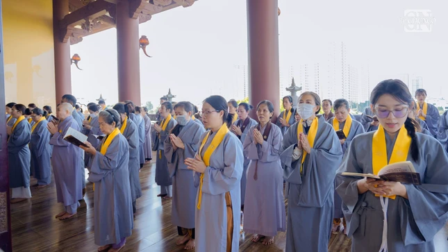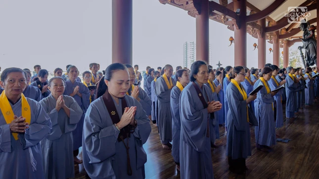 GNO - Sáng nay, 16-11-Ất Tỵ (4-1-2026), đông đảo thiện tín về chùa Huê Nghiêm (phường An Khánh, TP.HCM) phát nguyện thọ y và nâng y theo Đạo tràng Pháp Hoa.