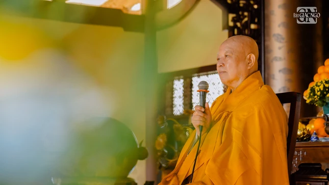 Đại lão Hòa thượng Thích Trí Quảng - phương trượng chùa Huê Nghiêm thân lâm niêm hương bạch Phật, hướng dẫn nghi thức sám hối và phát nguyện thọ y.