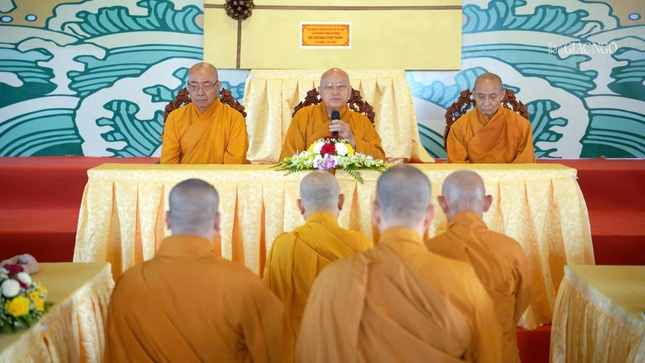 Thượng tọa Thích Đạt Ma Khế Định báo cáo công tác Đại giới đàn Chơn Thành |