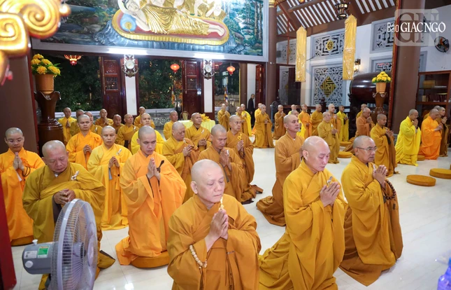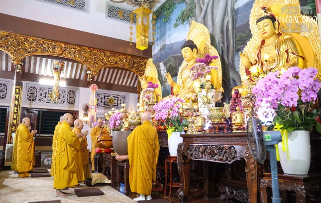GNO - Sáng nay, 15 tháng Chạp năm Ất Tỵ, chư Tăng trú xứ các phường Tân Sơn Hòa, Tân Sơn Nhất, Tân Hòa, Bảy Hiền, Tân Bình và Tân Sơn vân tập về chùa Báo Ân (P.Tân Sơn Nhất, TP.HCM) cử hành lễ Bố-tát cuối năm.