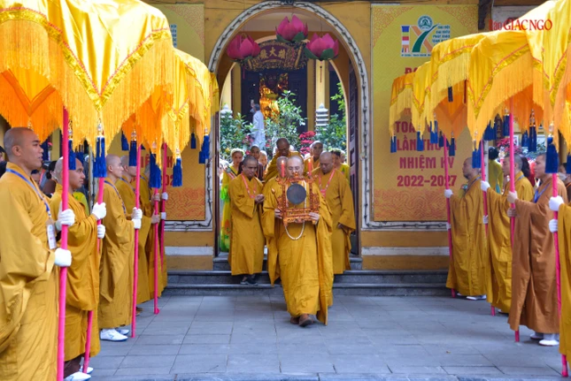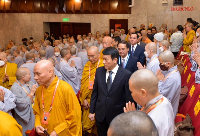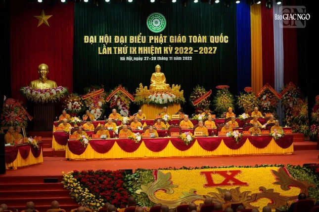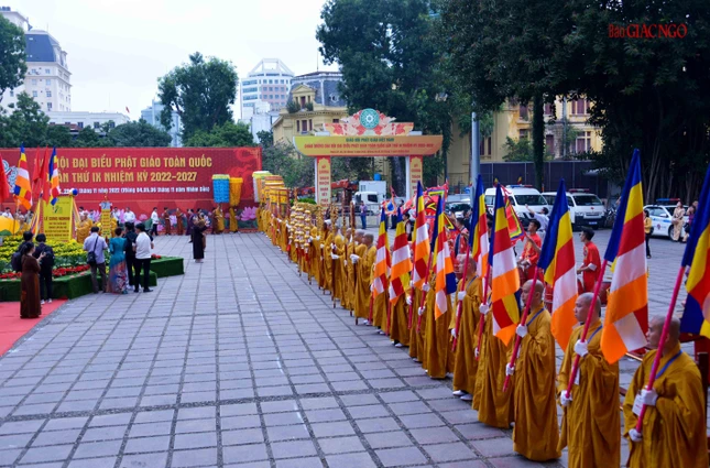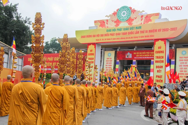 GNO - Sáng nay, 28-11, chư tôn giáo phẩm Hội đồng Chứng minh, Hội đồng Trị sự đã thực hiện nghi thức lễ cầu nguyện Tam bảo tại trụ sở Trung ương GHPGVN, sau đó Ban Tổ chức cung nghinh chư Trưởng lão quang lâm Cung Văn hóa Hữu nghị Việt - Xô khai mạc Đại hội IX GHPGVN.