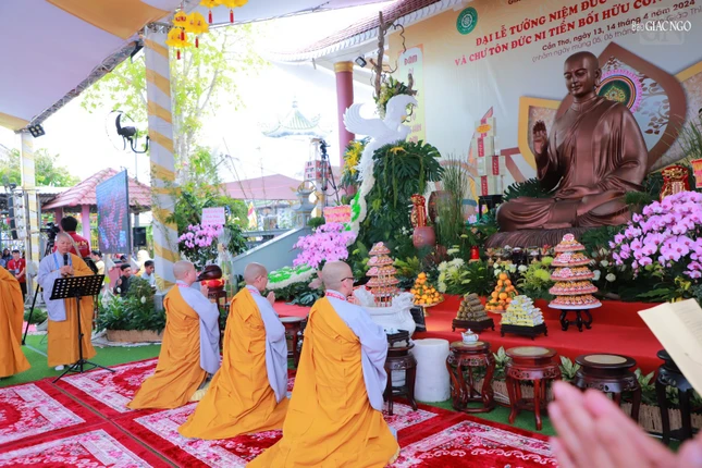 GNO - Sáng 13-4, tại chùa Phước Khánh (ấp Mỹ Lộc, xã Mỹ Khánh, H.Phong Điền, TP.Cần Thơ) diễn ra Lễ dâng hương tưởng niệm Đức Thánh Tổ Ni Đại Ái Đạo, chư tôn đức Ni tiền bối hữu công Phật giáo Việt Nam.