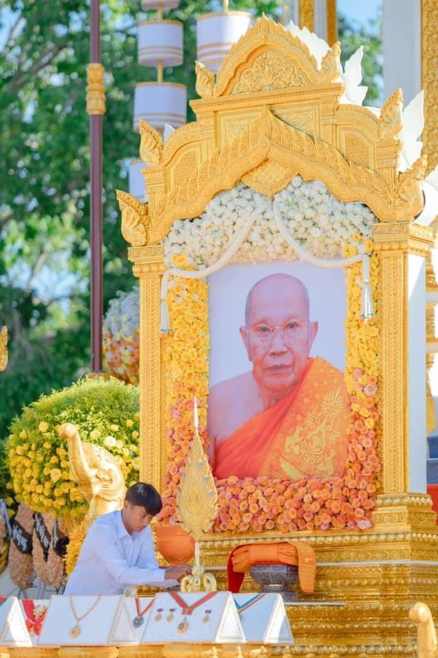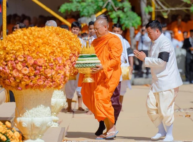 Phái đoàn GHPGVN do Trưởng lão Hoà thượng Viên Minh, Phó Pháp chủ Hội đồng Chứng minh dẫn đầu đã quang lâm chứng dự, cầu nguyện tại đài hỏa táng được xây dựng đặc biệt trong khuôn viên chùa Botum, thủ đô Phnôm Pênh, Campuchia.